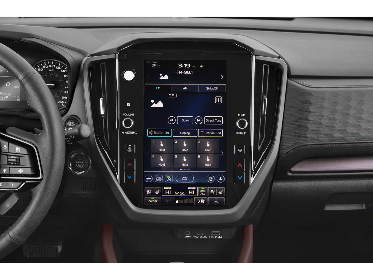 - Radio: Subaru 11.6" Multimedia Navigation System -inc: valet mode, integrated center information display, AM/FM stereo HD Radio, multi-touch gesture high resolution display screen, voice activated controls, voice activated navigation, Bluetooth® audio streaming and hands-free phone connectivity w/SMS text messaging connectivity (refer to subaru.com for cell phone compatibility), TomTom navigation software w/What3Words, iPod control capability, SiriusXM w/360L (4 months free trial/subscription required after), SiriusXM Travel Link (3 years free trial/subscription required after), SiriusXM Live Traffic (1 year free trial/subscription required after), smartphone integration for Android Auto and Apple CarPlay w/full screen view and wireless connection, USB and Over The Air (OTA) audio system update, TomTom navigation system update w/USB/Map Over The Air (MOTA) (3 years free map updates), steering wheel control switches for audio and Bluetooth®, harman/kardon speaker system w/11 speakers and 576 watt equivalent maximum output amplifier, 3.5mm auxiliary input jack and roof mounted audio and satellite antenna